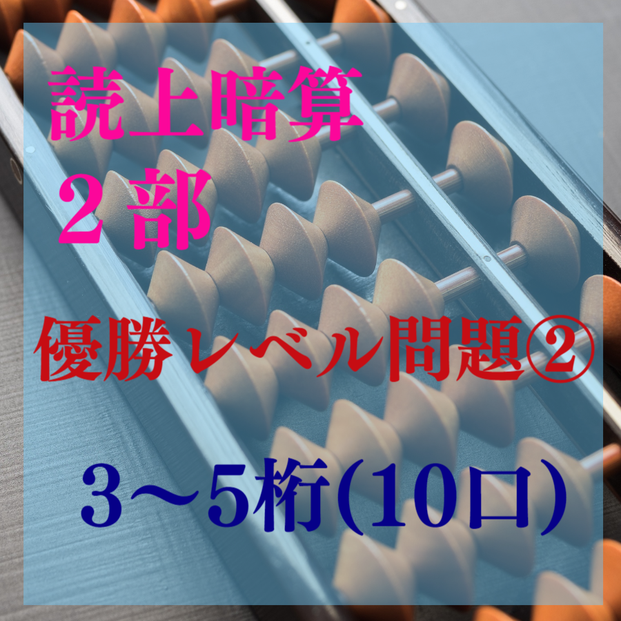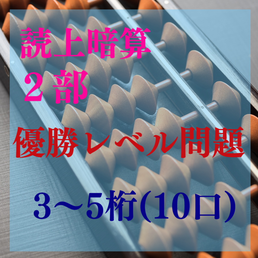 これが出来れば優勝!?狙えるかも。 これが出来れば優勝!?狙えるかも。 7~14桁です。 7~13桁です。 7~12桁です。 これが出来れば優勝!?狙えるかも。 7~11桁です。 5~10桁です。 これが出来れば優勝!?狙えるかも。 5~9桁です。 5~8桁です。 読上暗算 練習動画まとめ 作成中しばらくお待ちください。 これが出来れば優勝!?狙えるかも。 3~6桁(7口) これが出来れば優勝!?狙えるかも。 これが出来れば優勝!?狙えるかも。 3~5桁(7口) 3~5桁(7口) 3~4桁(10口) 3~4桁(10口) これが出来れば優勝!?狙えるかも。 2~4桁(7口) 2~4桁(5口) ページトップへ